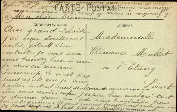 ungelaufen, Eckknick rechts unten, Rückseite beschrieben, sonst guter Zustand