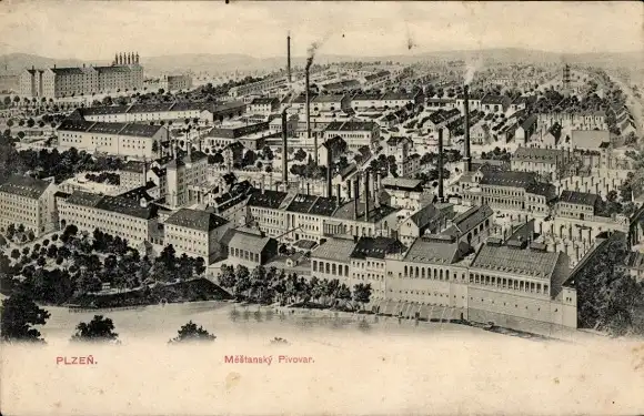Ak Plzeň Pilsen Stadt, Brauerei, Panorama