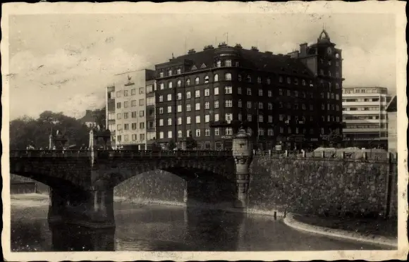 Ansichtskarte, Postkarte, Plzeň, Pilsen, Brücke, Brücken