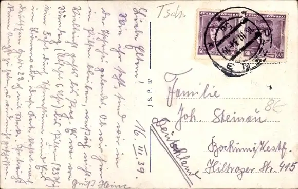 Zustand, siehe Scan, gelaufen, 1939 - ca 14 cm X 9 cm
