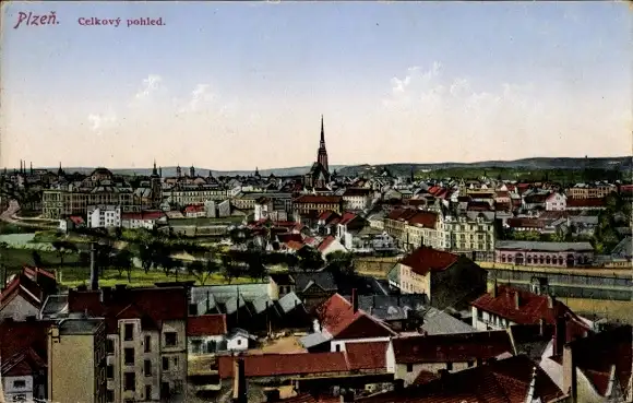 Ak Plzeň Pilsen Stadt, Gesamtansicht