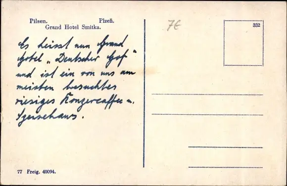 Ak Plzeň Pilsen Stadt, Hotel Smitka