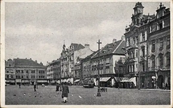 Ak Plzeň Pilsen Stadt, Platz, Straßenbahn