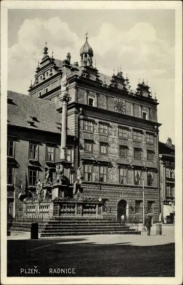 Ak Plzeň Pilsen Stadt, Radnice, Rathaus, Denkmal