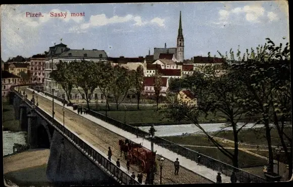 Ak Plzeň Pilsen Stadt, Sachsenbrücke