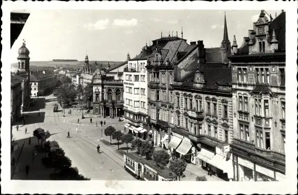 Ak Plzeň Pilsen Stadt, Straßenpartie, Straßenbahn