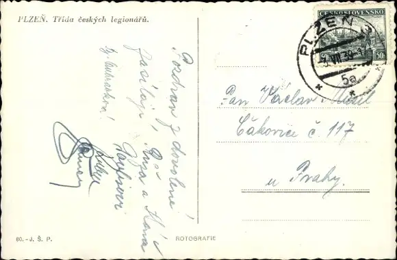 Ansichtskarte, Postkarte, Straßenbahn, Straßenbahnen, Tram, Plzeň, Pilsen