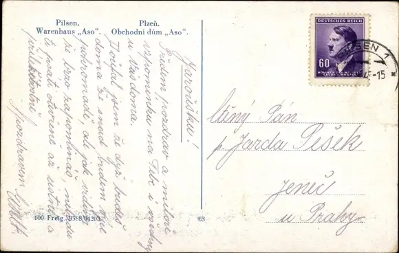 Ak Plzeň Pilsen Stadt, Warenhaus Aso