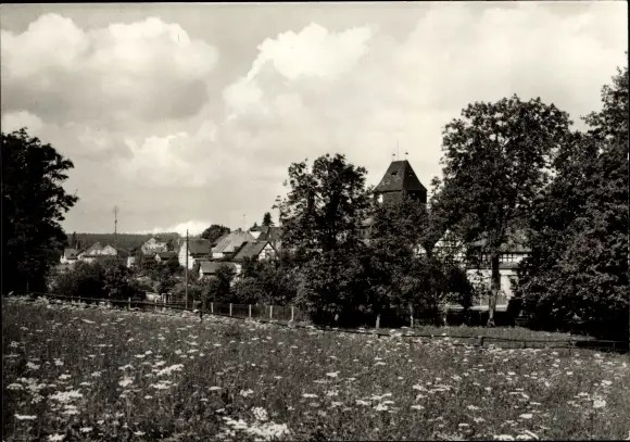 Ak Pöllwitz Zeulenroda in Thüringen, Ortsansicht, Wiese