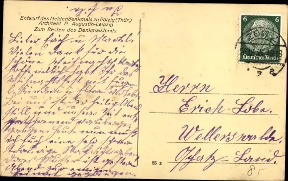 Ak Pölzig in Thüringen, Entwurf des Heldendenkmals, Architekt P. Augustin, Leipzig