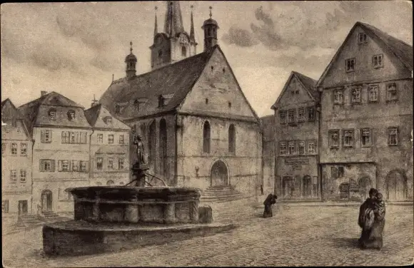 Ak Pößneck in Thüringen, Alt-Pößneck, Marktplatz, Brunnen, Kirche