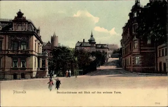 Ak Pößneck in Thüringen, Bernhardstraße, weißer Turm