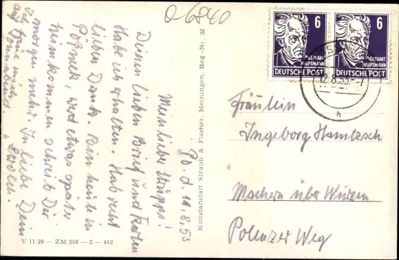 Zustand, siehe Scan, gelaufen, 1953 - ca 9 cm X 14 cm