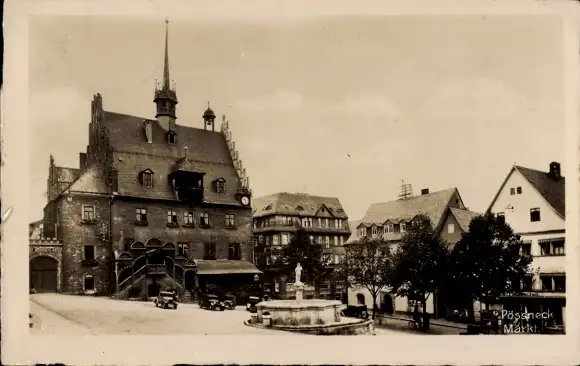 Ak Pößneck in Thüringen, Markt, Brunnen, Rathaus