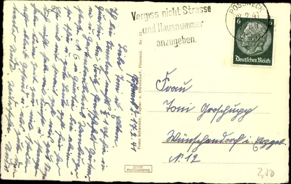 Zustand, siehe Scan, gelaufen, 1941 - ca 14 cm X 9 cm