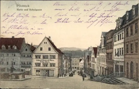 Ak Pößneck in Thüringen, Markt, Schulgasse, Geschäftshäuser