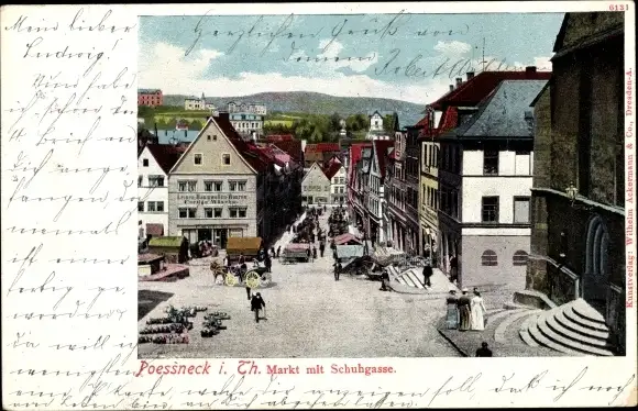 Ak Pößneck in Thüringen, Markt mit Schuhgasse