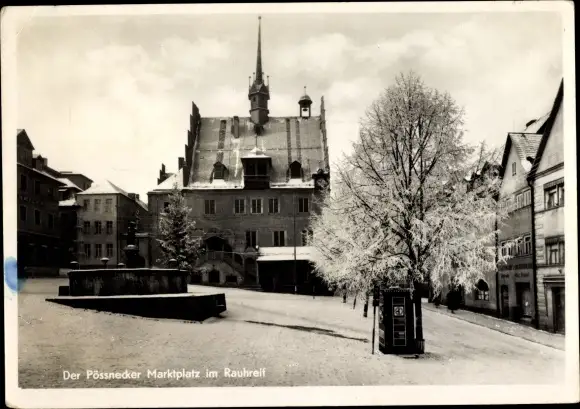 Ak Pößneck in Thüringen, Marktplatz im Rauhreif