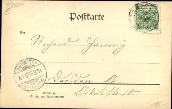 gelaufen 1899, Eckknick rechts unten, sonst guter Zustand
