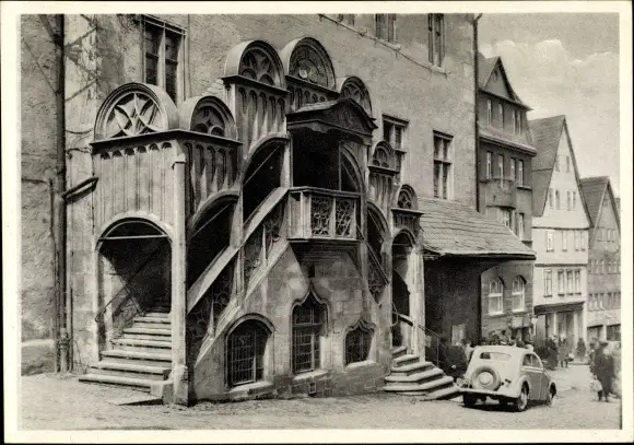 Ak Pößneck in Thüringen, Rathaus, Eingangsbereich