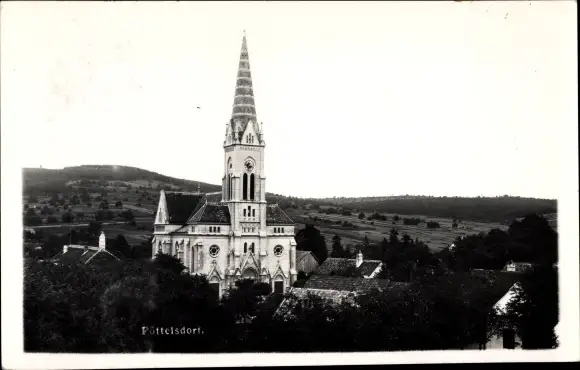 Ak Pöttelsdorf Burgenland, Teilansicht mit Kirche