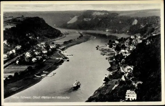 Ak Pötzscha Wehlen an der Elbe Sachsen, Sächsische Schweiz, Fliegeraufnahme