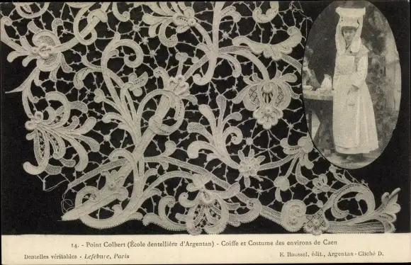 Ak Point Colbert, Geklöppelte Spitze, Frau in Tracht