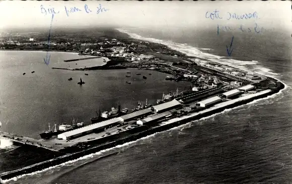 Ak Pointe Noire Republik Kongo, Hafen, Fliegeraufnahme