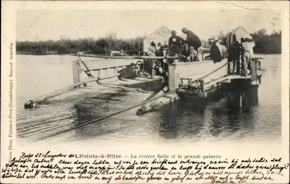 Ak Pointe a Pitre Guadeloupe, La riviere Salée, grande gabarre, Seilfähre