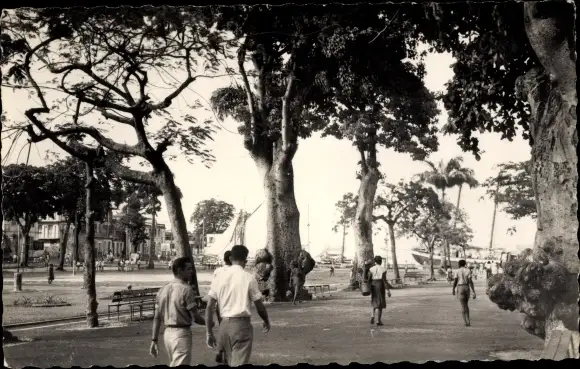 Ak Pointe a Pitre Guadeloupe, Place de la Victoire dans l'allee matinale