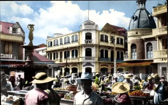 Ak Pointe a Pitre Guadeloupe, Un coin du marche et magasins avoisinants