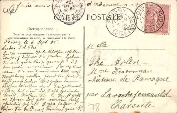 Zustand, siehe Scan, gelaufen, 1905 - ca 14 cm X 9 cm