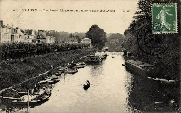 Ak Poissy Yvelines, Poissy - Le Bras Migneaux, vue prise du Pont C. M.