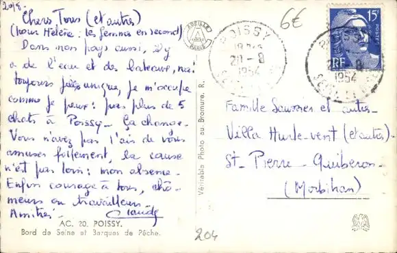 Zustand, siehe Scan, gelaufen, 1954 - ca 5 cm X 3 cm