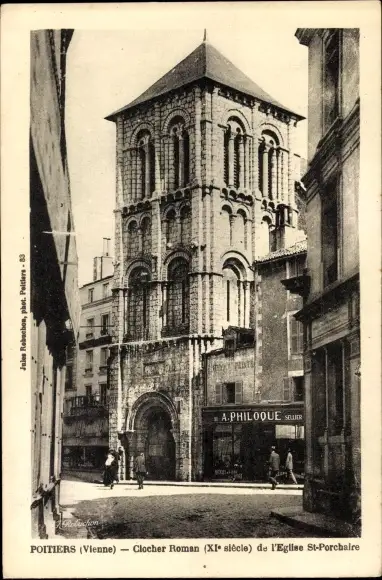 Ak Poitiers Vienne, Clocher Roman de l'Eglise St. Porchaire