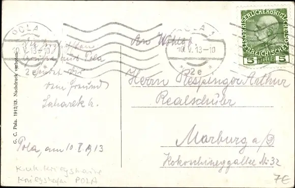 Zustand, siehe Scan, gelaufen, 1913 - ca 14 cm X 9 cm