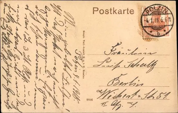 Zustand, siehe Scan, gelaufen, 1918 - ca 14 cm X 9 cm