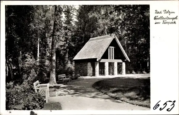 Ak Polczyn Zdrój Bad Polzin Pommern, Quellentempel im Kurpark