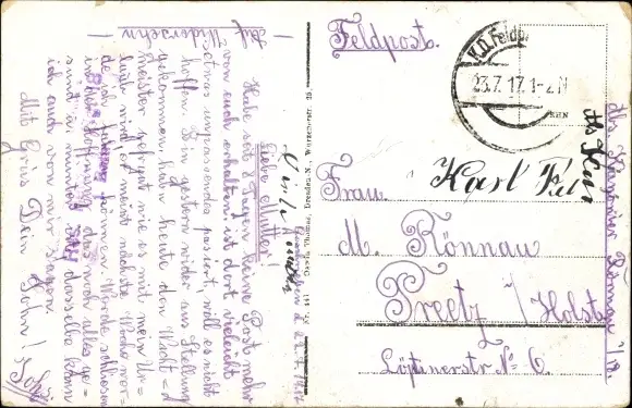 Zustand, siehe Scan, gelaufen, 1917 - ca 14 cm X 9 cm