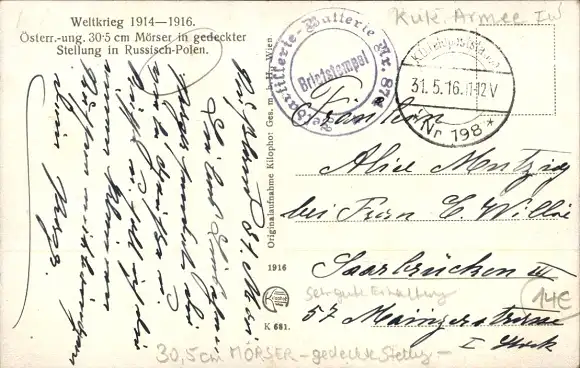 Zustand, siehe Scan, gelaufen, 1916 - ca 14 cm X 9 cm