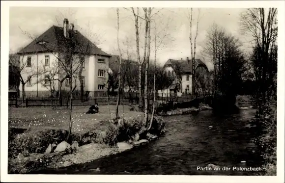 Ak Polenz Neustadt in Sachsen, Partie am Bach mit Birken