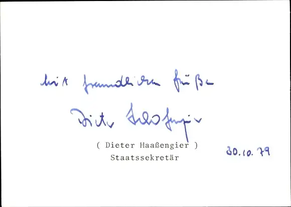 Ak Politiker Dieter Haaßengier, Autogramm