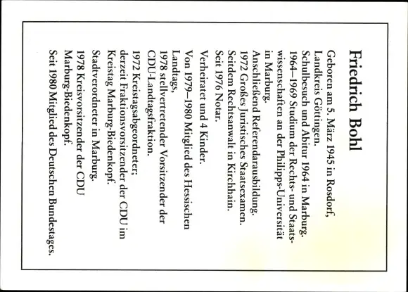 Ak Politiker Friedrich Bohl, Portrait, Autogramm