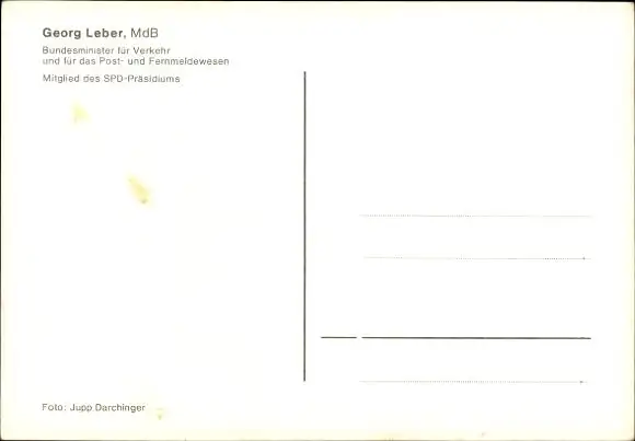 Ak Politiker Georg Leber, Bundesminister für Verkehr, SPD, Autogramm