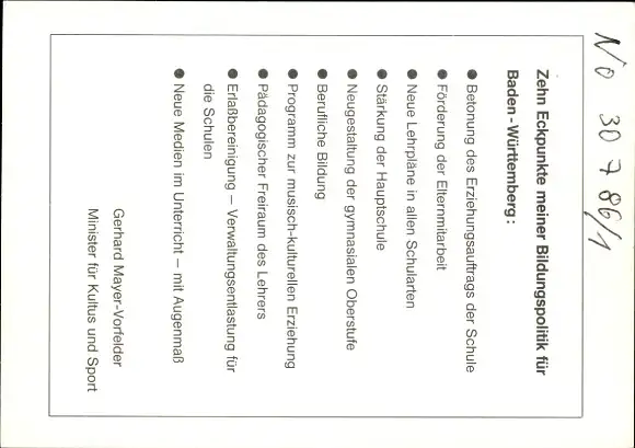 Ak Politiker Gerhard Mayer-Vorfelder, Portrait, Autogramm