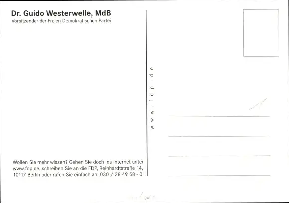 Ak Politiker Guido Westerwelle, Vorsitzender der FDP, Portrait, Autogramm