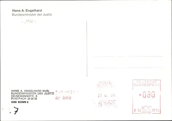 Ak Politiker Hans A. Engelhard, Portrait, Autogramm