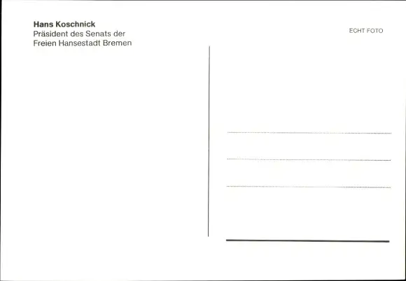 Ak Politiker Hans Koschnick, Präsident des Bremer Senats, Portrait, Autogramm
