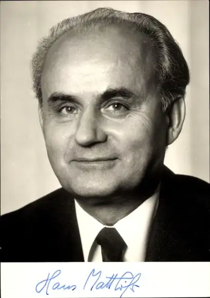 Ak Politiker Hans Matthöfer, Bundesminister für Forschung und Technologie, Portrait, Autogramm