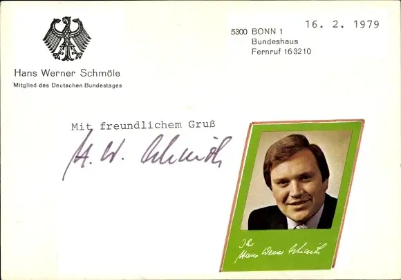 Ak Politiker Hans Werner Schmöle, Portrait, Autogramm